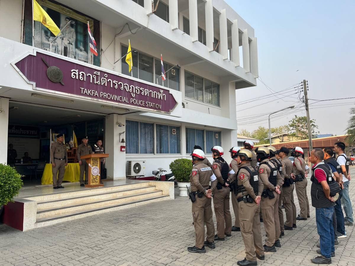 ได้ร่วมปล่อยแถวข้าราชการตำรวจ เพื่อระดมกวาดล้างอาชญากรรม บริเวณที่ทำการ สภ.ตากฟ้า
