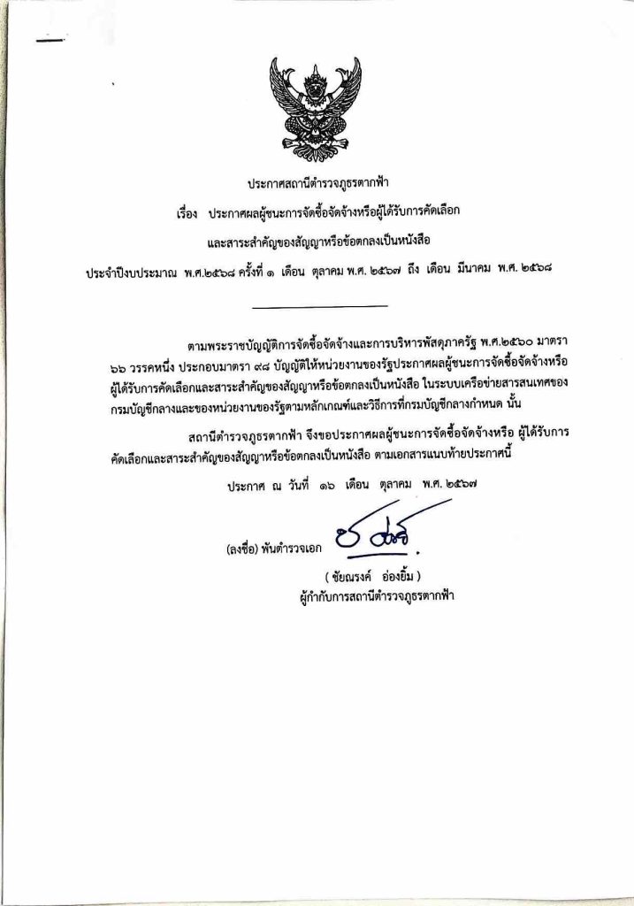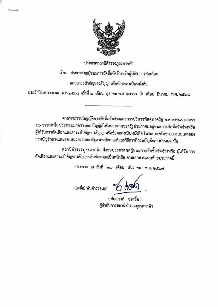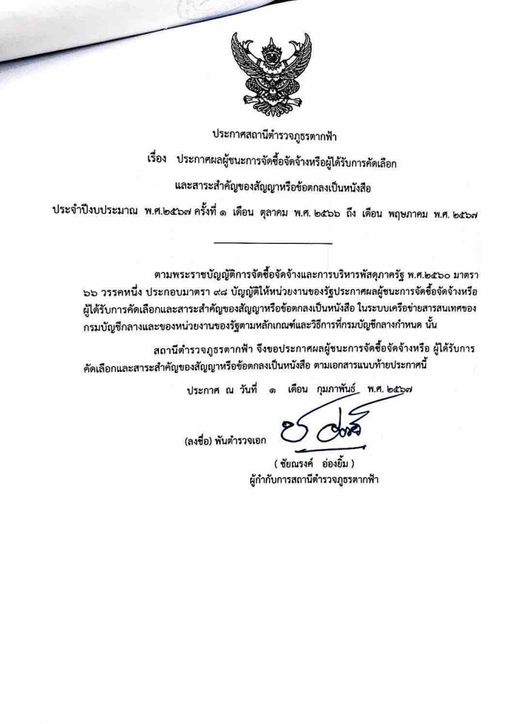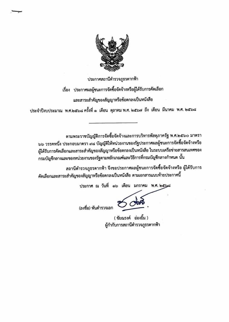 ประกาศผู้ชนะจัดซื้อจัดจ้าง 6 เดือน