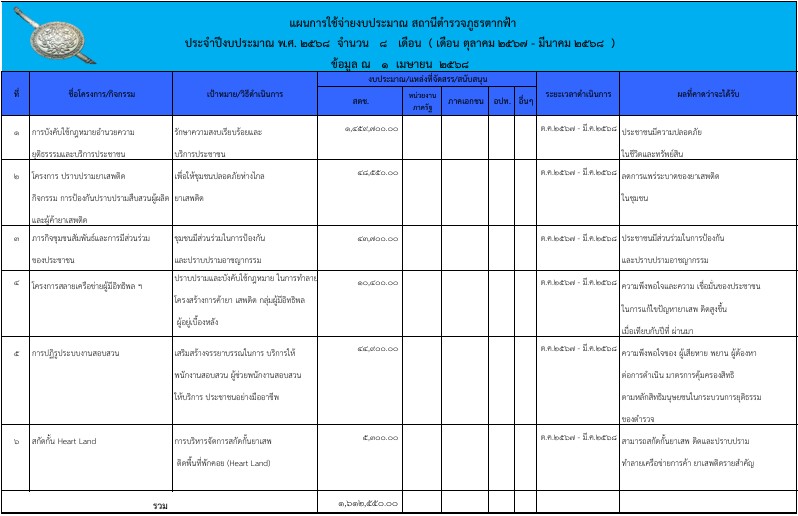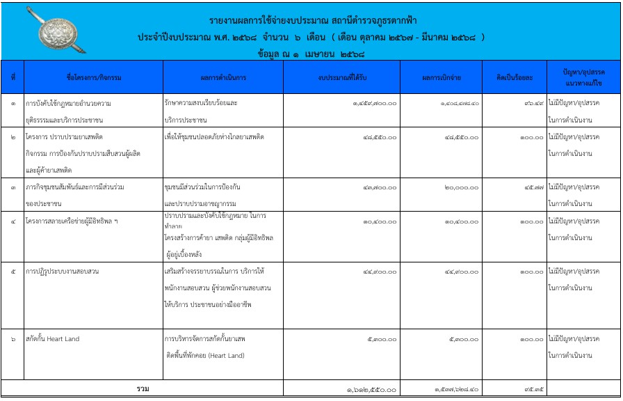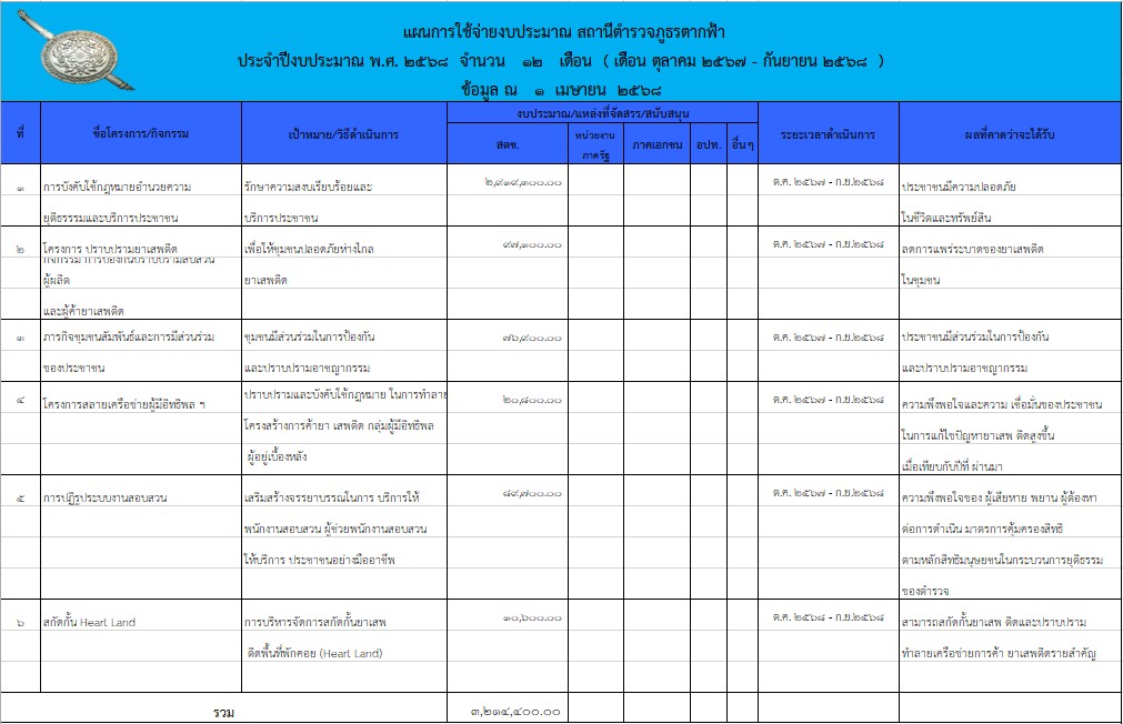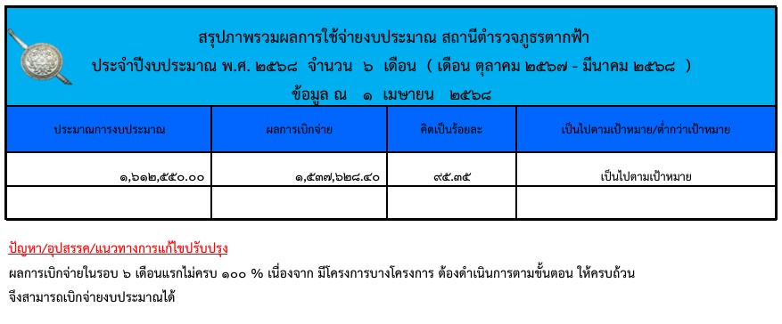 แผนการใช้จ่ายงบประมาณ สภ.ตากฟ้า