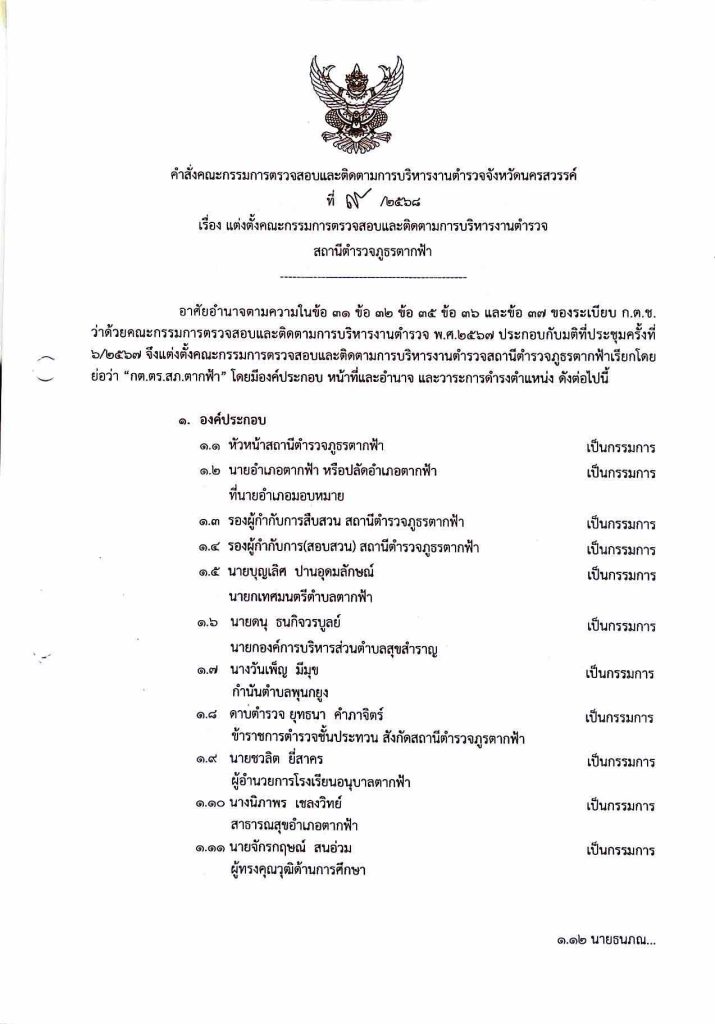 คำสังคณะกรรมการตรวจสอบและติดตามการบริหารงานตำรวจจังหวัดนครสวรรรค์ เรื่อง แต่งตั้งคณะกรรมการตรวจสอบและติดตามการบริหารงานตำรวจ สถานีตำรวจภูธรชุมตาบง