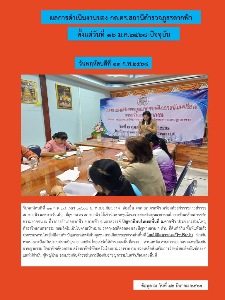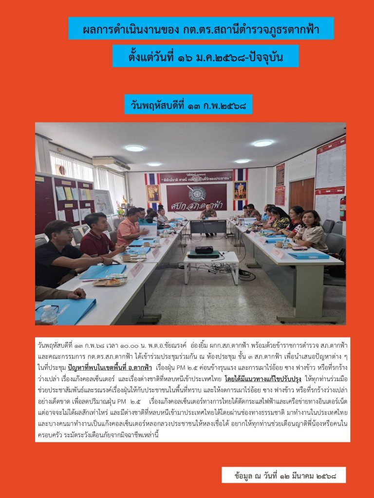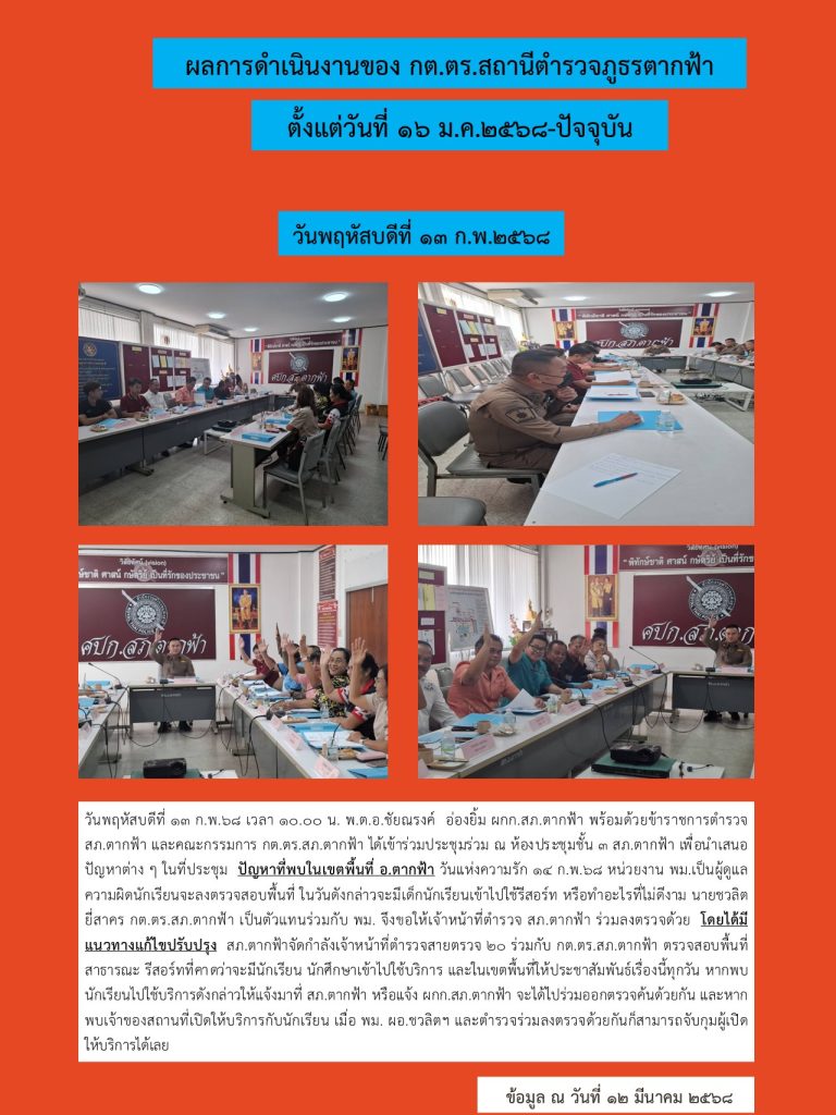 ผลการปฏิบัติ กต.ตร.สภ.ตากฟ้า เดือน กุมภาพันธ์ 2568
