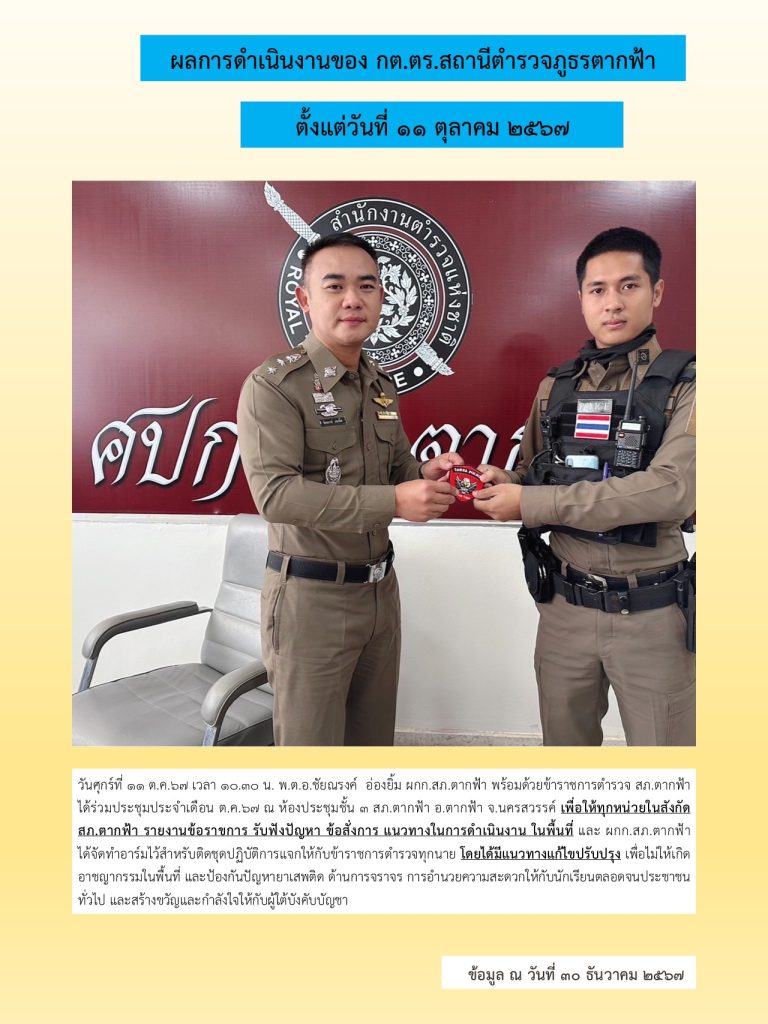 ผลการปฏิบัติ กต.ตร.สภ.ตากฟ้า เดือน พฤศจิกายน 2567